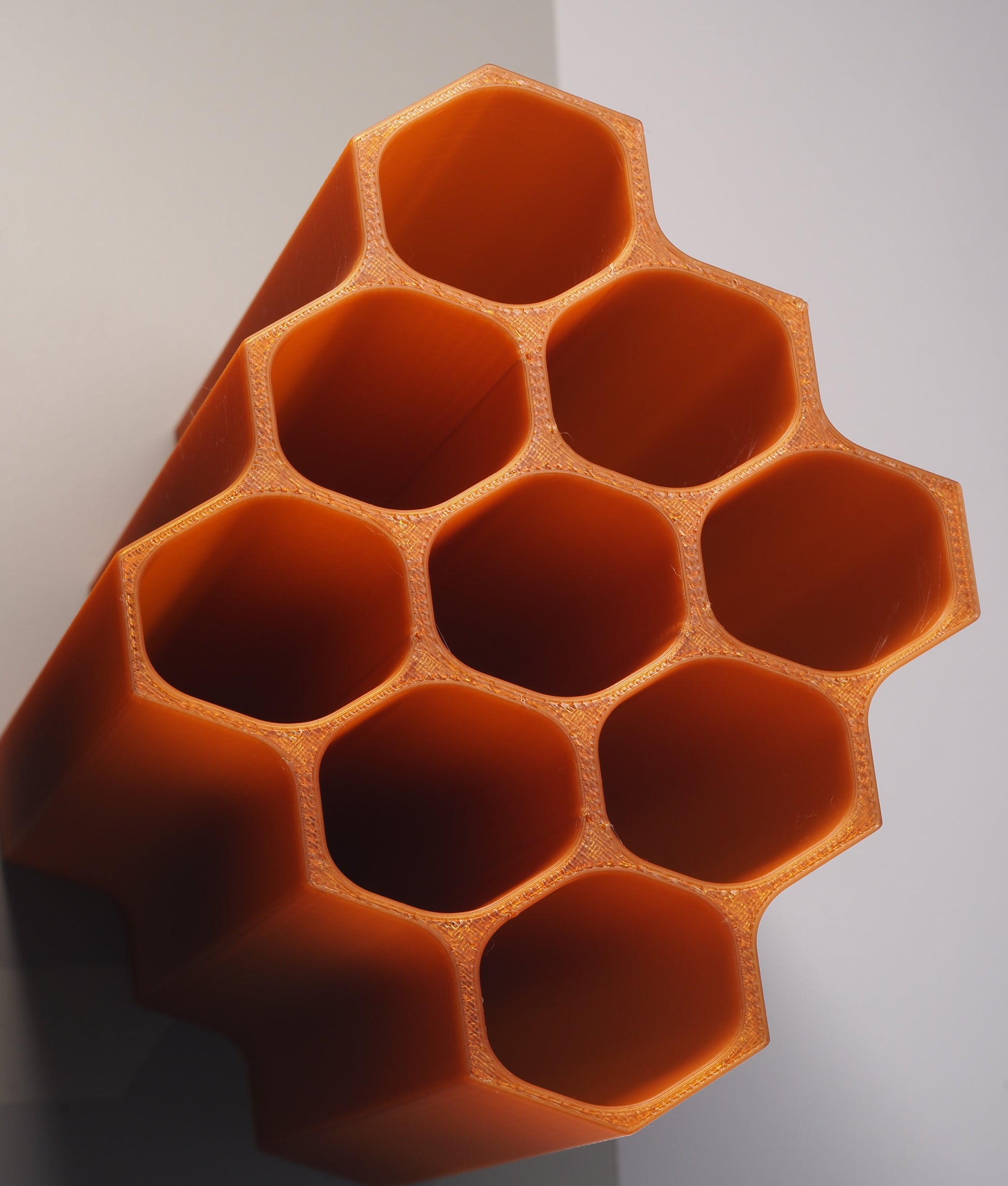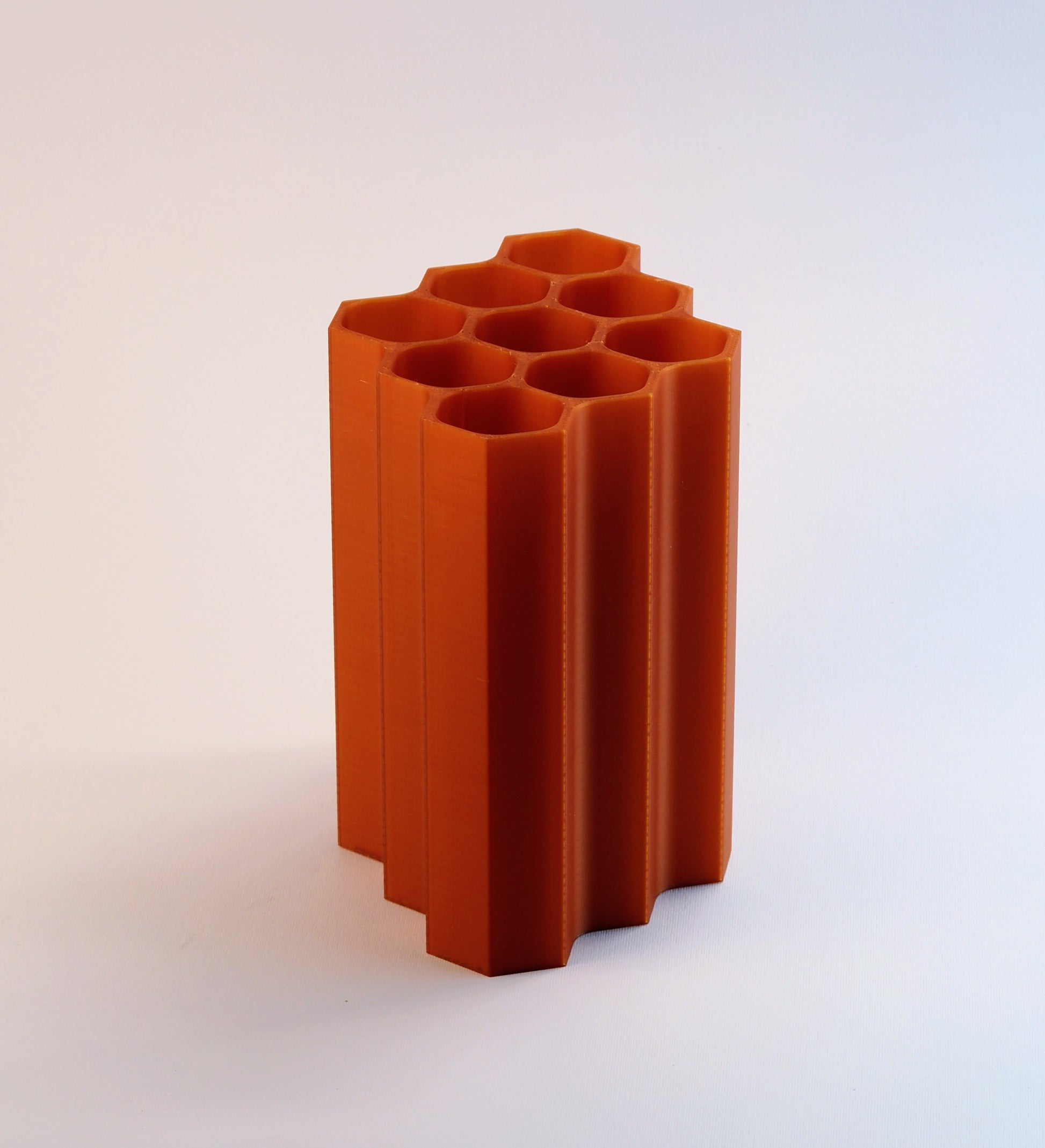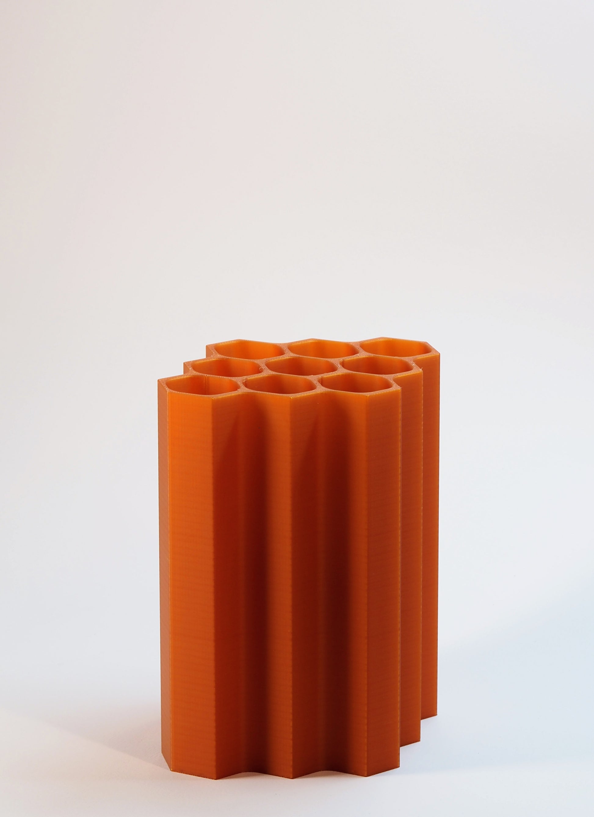 Questo vaso è un omaggio alle api, custodi di equilibrio e vita, la cui architettura perfetta diventa ispirazione per un complemento d’arredo capace di unire armonia, calore e funzionalità.