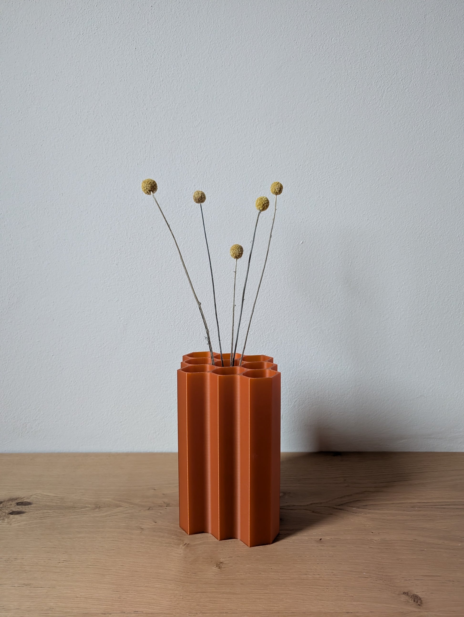 I nostri vasi sono realizzati in PLA di origine naturale, un materiale ecosostenibile e biodegradabile. Per conservarli al meglio nel tempo, ti consigliamo di usarli con decorazioni secche o che non prevedano l'utilizzo di acqua, e di mantenerli sempre lontani da fonti di calore. Così il vaso preserverà la sua forma e il suo aspetto raffinato, continuando a valorizzare i tuoi spazi con eleganza e rispetto per la natura.